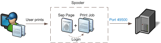 The term Print&Follow™ is generally understood to mean that the print job follows the user, i.e. it does not matter to which device the user goes to get their print job. For this purpose, the print job is temporarily stored in memory by Kyocera Control and is only displayed after logging in to the device or is transmitted only when a print request is made.