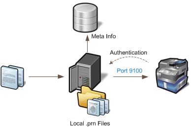 When a job is printed, the print file is sent from the PrintService to the device (default port 9100).