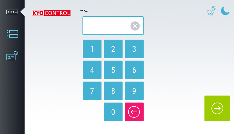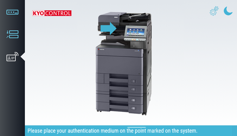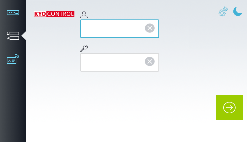 Log in to the device with username and password, PIN or contactless card (RFID). Which login methods are available can be defined by the administrator.